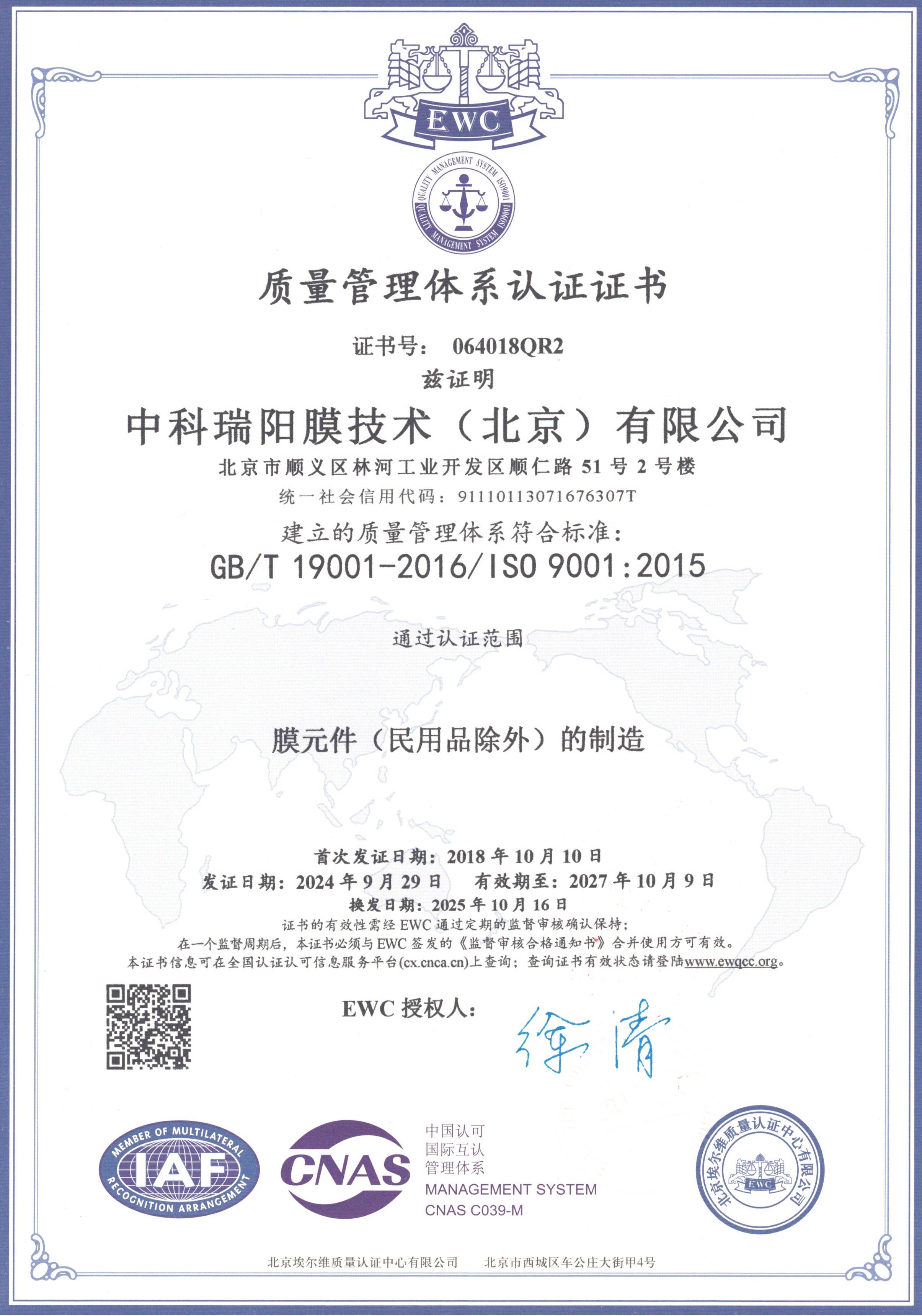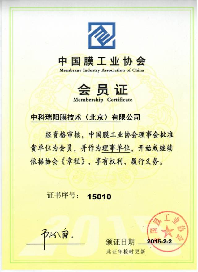 中科瑞陽膜技術(北京)有限公司是國家級高新技術企業(yè),中關村科技園高新技術企業(yè),中國膜工業(yè)協(xié)會信用評價3A級企業(yè),專注于液體分離過濾膜產(chǎn)品的研發(fā)、生產(chǎn)、應用和服務。公司產(chǎn)品涵蓋各類膜元件型式及不同大小的截留分子量,從微濾、超濾、納濾到反滲透,從卷式,平板到管式膜元件。公司產(chǎn)品在廢水、生物發(fā)酵、醫(yī)藥、染料和電泳涂裝行業(yè)中均有廣泛應用,并與國內(nèi)外多家知名企業(yè)合作。