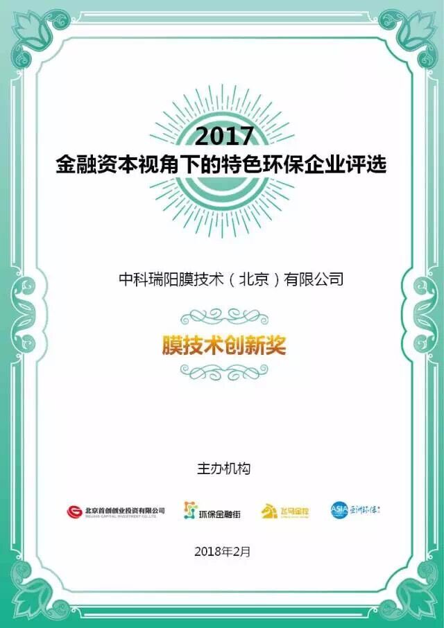 中科瑞陽榮獲“中國(guó)膜行業(yè)杰出企業(yè)”殊榮