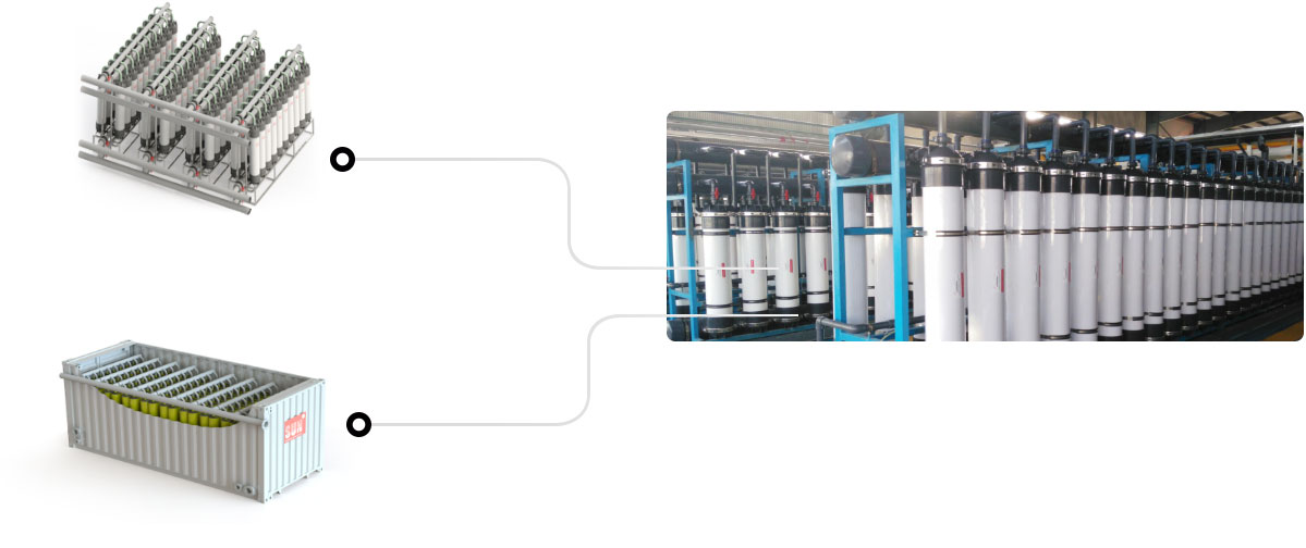 SMBR 是一種浸沒(méi)式,真正可反洗卷式膜,適用于工業(yè)廢水和工藝用水。SMBR 是在傳統(tǒng)卷式膜的基礎(chǔ)上增加曝氣擦洗,從透過(guò)液側(cè)提供壓力和流量進(jìn)行反洗的創(chuàng)新性產(chǎn)品。它的最大優(yōu)勢(shì)在于無(wú)需在供給側(cè)提供高耗能的壓力和流量,而僅在透過(guò)液側(cè)按相應(yīng)產(chǎn)能提供抽吸能量。同時(shí),它可與中空纖維膜按同樣的反洗頻次進(jìn)行反洗。