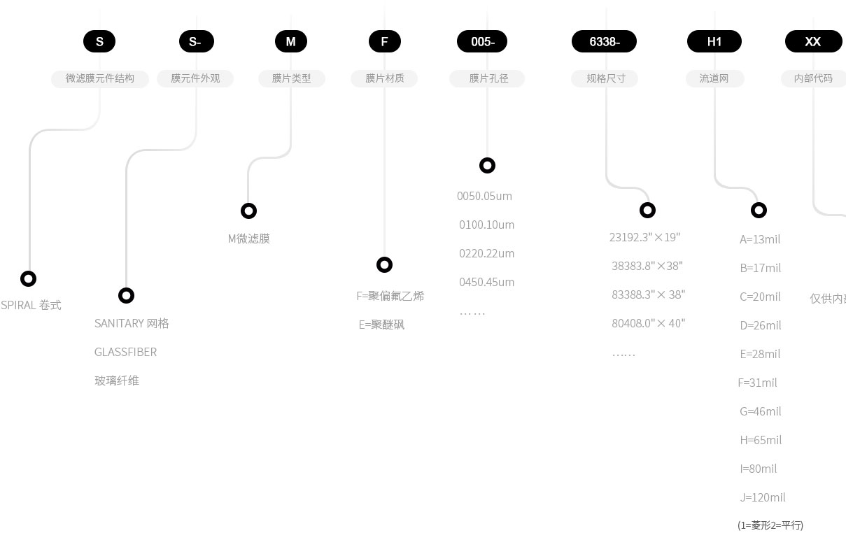 各種規(guī)格的膜元件可供選用
